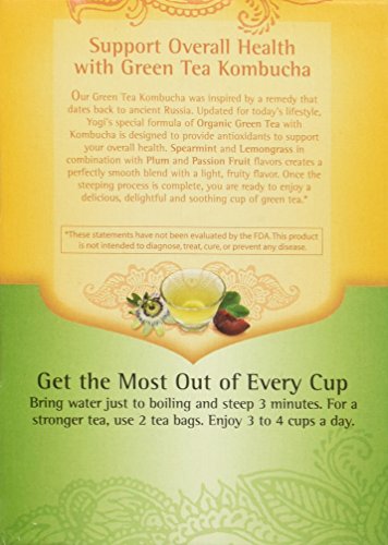 -. Binding : Health and Beauty -. Brand : Yogi Teas -. EAN : 0076950450219 -. Feature : All natural with no preservatives or artificial ingredients / This tea was inspired by a remedy that dates back to ancient Russia / Blended with organic green tea, designed to support your immune system and supply antioxidants / Spearmint supports digestion, as lemongrass and plum flavors create a fragrant blend with a light flavor / Enjoy this delicious, delightful and soothing cup of green tea any time of day -. IsAdultProduct : 0 -. Label : Everready First Aid -. Manufacturer : Everready First Aid -. MPN : 067231-1 -. NumberOfItems : 1 -. PackageQuantity : 1 -. PartNumber : 067231-1 -. ProductGroup : Health and Beauty -. ProductTypeName : HEALTH_PERSONAL_CARE -. PublicationDate : 2016-01-18 -. Publisher : Everready First Aid -. ReleaseDate : 2016-01-15 -. Studio : Everready First Aid -. Title : Yogi Tea Green Tea Kombucha Organic, 16 Count -. UPC : 710465369566
