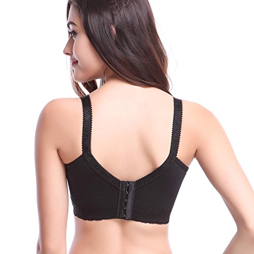 - Feature : Fabric:85% Cotton+15% Spandex,lace embroidery / Non-padded full coverage cup,Champagne,black are wirefree;others are underwired / Wide and adjustable straps prevent straps dig-in,wide side support for push up. / Easy nursing with one-hand release clasp / 4/5 hook&eye closure,sizes range from 36c to 48ddd.