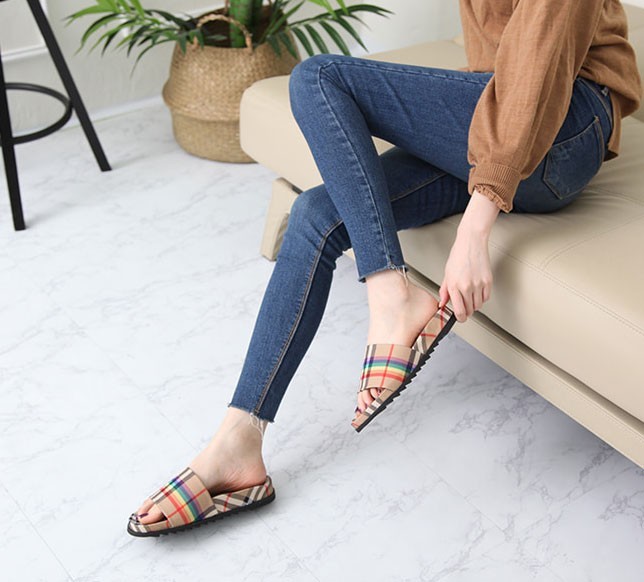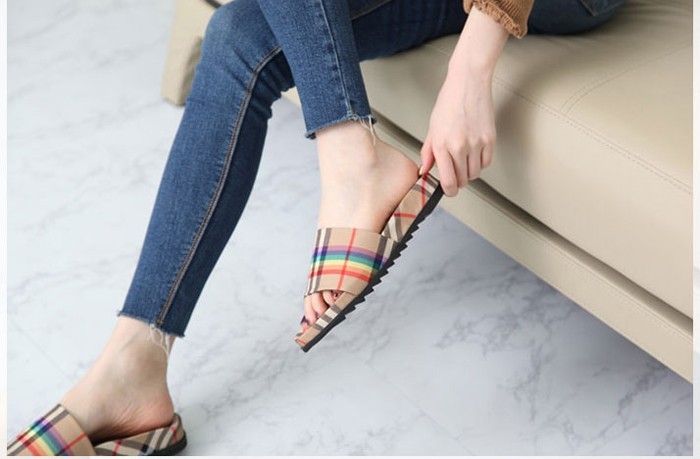 商品名:サンダル レディース チェック フラットサンダル 2018 夏 ファッション 靴 婦人靴