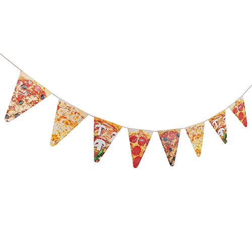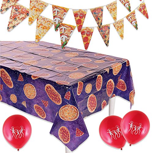 -. Binding : Toy -. Brand : 2Party -. Feature : Large plastic pizza table cover. 54" x 104" / 7 Foot realistic pizza pennant banner with 7" slices. / Greasy hands from eating pizza won't stain this plastic tablecloth! / P.R.Inted with your favorite food, this pizza tablecloth is perfect for summer BBQs, 4th of July celebrations and more. / 3 Jazzoo party balloons! -. Label : Megaorb -. Manufacturer : Megaorb -. MPN : B10138 -. PartNumber : B10138 -. ProductGroup : Toy -. ProductTypeName : TOYS_AND_GAMES -. Publisher : Megaorb -. Studio : Megaorb -. Title : Pizza Party Decoration Set with Realistic Pizza Pennant Banner and a Large Pizza P.R.Inted Table Cloth