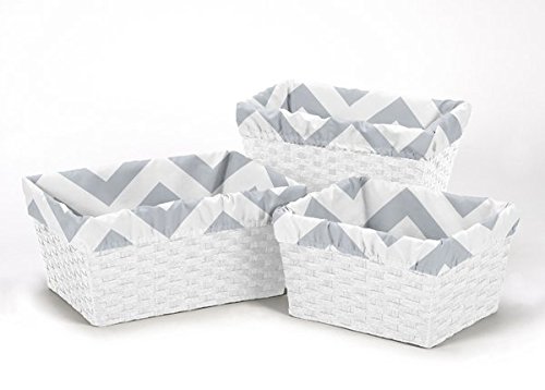 Sweet Jojo Designs 3-Piece Fits Most Basket Liners for Gray and White Chevron Zig Zag Bedding Sets