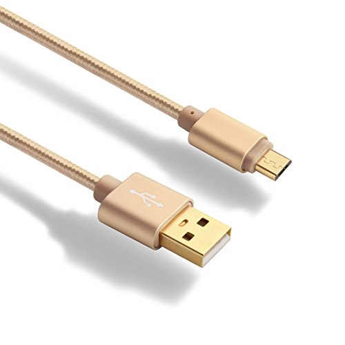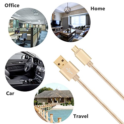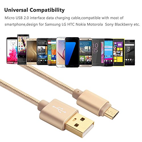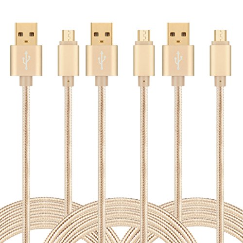 Micro USB Charging Cable, [Gold Plated] 6.6ft Long Pack Bundle of 3 Braided High Speed Premium USB A to Micro B Charger Cord for Android, Samsung, HTC, Nokia, LG, Moto, Tablet, Galaxy S6/S7 (Gold)