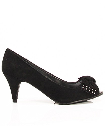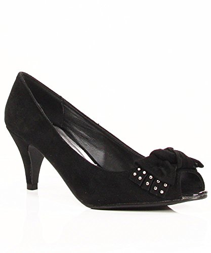 Qupid Orsen-262 Faux Suede Studded Open Toe Kitten Heel