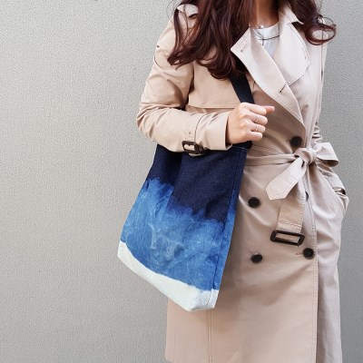 밤하늘과 바다를 연상시키는 핸드블리칭작업으로 제작된 가방입니다.
