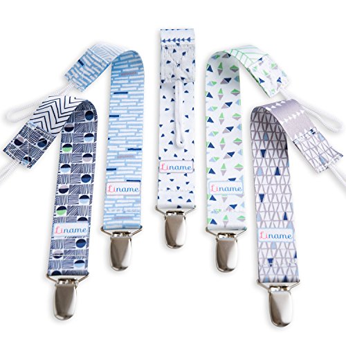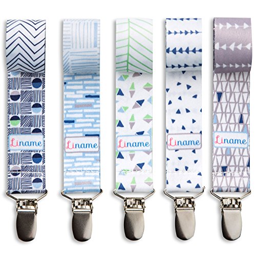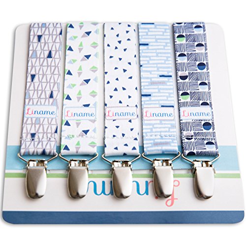 -. Title : Pacifier Clip Boys by Liname - 5 Pack - Premium Quality Universal Pacifier Clip - Modern 2-Sided Stylish Design - Soothie Pacifier Holder