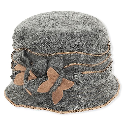 Binding : Apparel Product Description Made of Wool Blend cloche, soft, warm and sturdy (wool 30%, polyester 70%). Women's winter hat with contrast stitching, and 2 tone floral trim. Fleece lining will keep you warm. Brim size: 1.75". Inner circumference : approx. 21.5 inches. 0