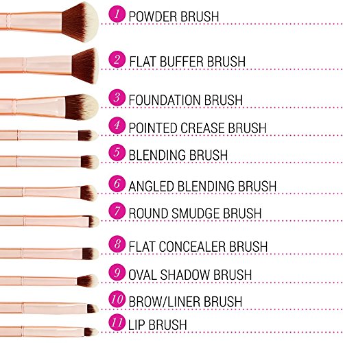 BH Cosmetics Metal Rose 11 Piece Brush Set with Cosmetic Bag