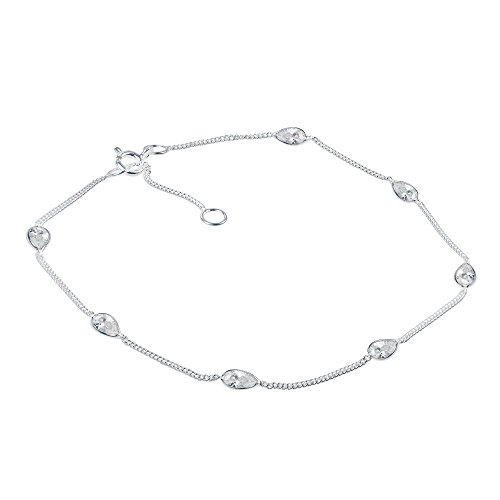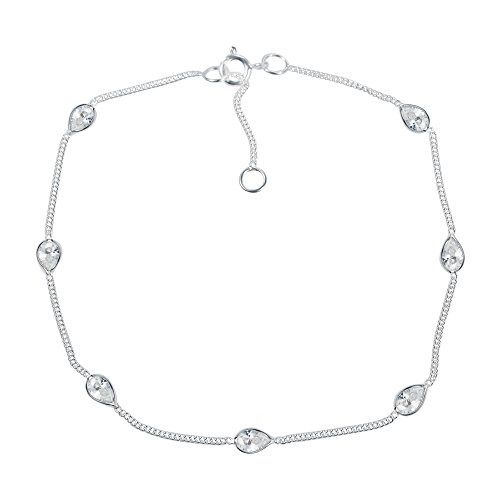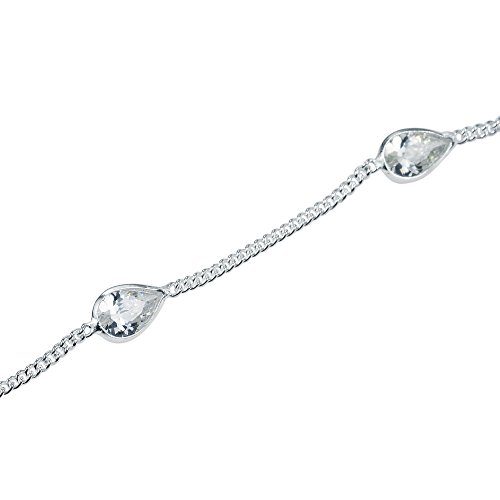 -. Title : Classy Teardrop White Cubic Zirconia Link .925 Silver Anklet