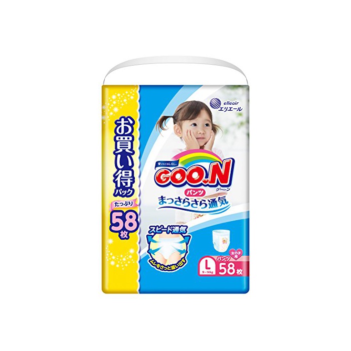 【케이스 판매】군(GOO.N) 부드러운 피트 팬츠 L사이즈 (9~14kg) 174매(58매입×3팩) 소녀