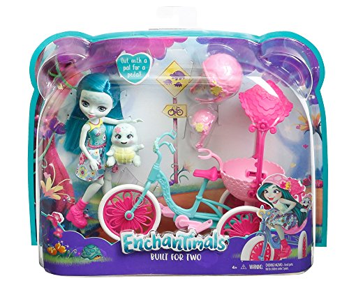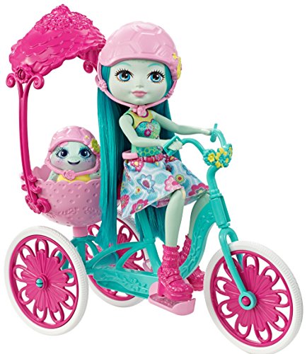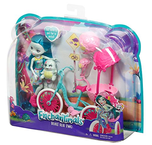 Roll into fun with the Built for Two doll set -- the exclusive Enchantimals Taylee Turtle doll and Bounder, her turtle bestie, have a tricycle with a carriage in back that the doll can really ride!