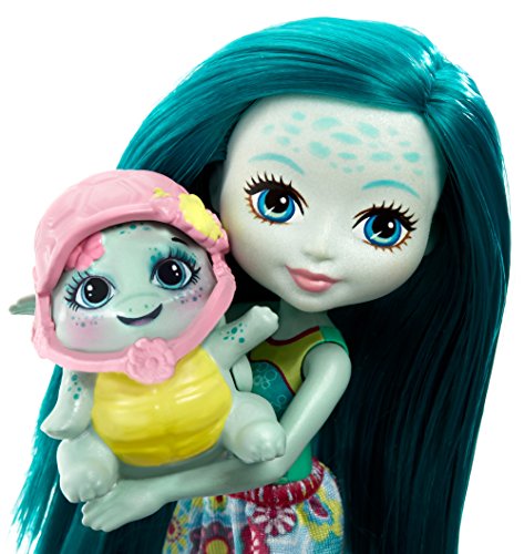 Let this Enchantimals play set enchant you -- an exclusive Enchantimals Taylee Turtle doll and Bounder, her turtle friend, have a tricycle the doll can really ride! Plus, a basket with canopy on the back lets Bounder figure ride along, too. Simply place the Enchantimals doll on the seat and clip her feet into the pedals and her hands on the handlebars, then push to roll the wheels and see her legs pedal -- this turtle doesn't have to be slow! The six-inch Taylee Turtle doll is ready to roll into fun wearing a colorful look with floral print on the removable shorts and pink shoes with sock details. A shell-inspired pink helmet with yellow flower matches the smaller one that fits her turtle friend -- and looks cool against her long teal hair. Her turtle friend Bounder is just as cute with a green body and teal shell. Kids will love recreating the wonder of nature and celebrating a world where Caring Is Our Everything. Collect all of the Enchantimals dolls and accessories to build out a world of Enchantimals and tell enchanting stories of your own (each sold separately, subject to availability). Includes Enchantimals Taylee Turtle doll wearing fashions and accessories, Bounder turtle friend, one tricycle and two helmets. Colors and decorations may vary.Feature