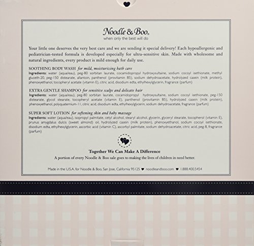 ReleaseDate : 2016-11-13 Studio : Noodle Boo Publisher : Noodle Boo Binding : Health and Beauty Product Description Contains 3 bath time essentials that nourish and protect skin, in a gift-able size. Soothing Body Wash soothes and cleanses tender skin. Extra Gentle Shampoo conditions hair, keeping it healthy and shiny. Super Soft Lotion hydrates and softens skin. Arrives in signature pink/blue packaging. 0