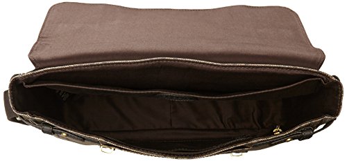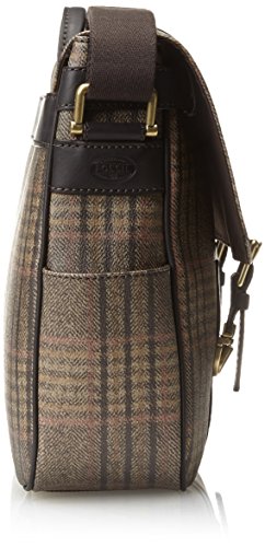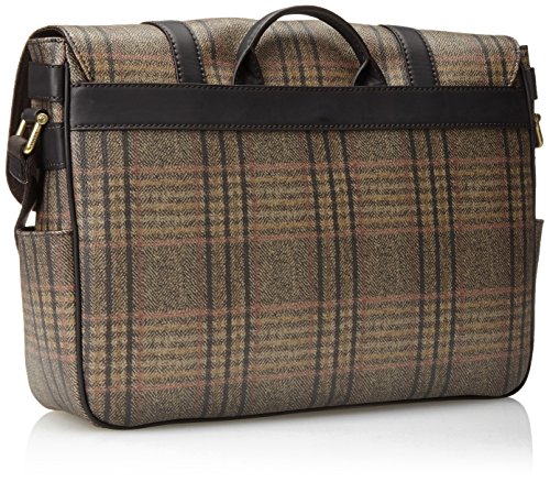 -. Feature : Plaid patterned messenger bag featuring half-length front flap and two push-lock straps with decorative buckles / Back grab handle and adjustable cross-body strap / Pockets: 1 interior zip, 4 interior slip, 3 exterior, 1 card slot