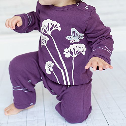 Feature : 100% Certified Organic cotton. Hand-printed designs with fabric like feel - super soft! / Footless, so baby and toddler can always have access to their toes. / Tagless and added gusset in the rear for extra bum room. Made Ethically and in a Fair Trade facility. Made in India / Lead and nickle free YKK snaps. Machine wash cold, no bleach, tumble dry low. / Available in Sizes 0-6, 6-12, 12-18, 18-24 months. See size chart to select best fit.
