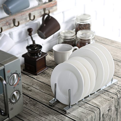 7 Slot Chrome Plated Dish Racks, Countertop Plate Organizer and Drying Rack