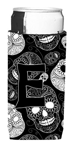 Letter E Day of the Dead Skulls Black Ultra Beverage Insulators for slim cans CJ2008-EMUK