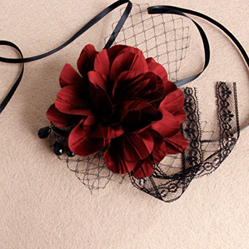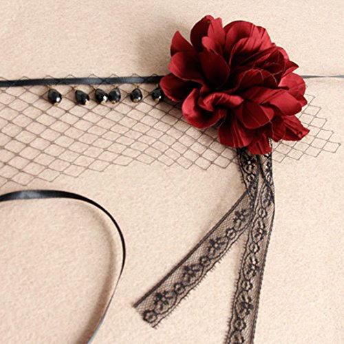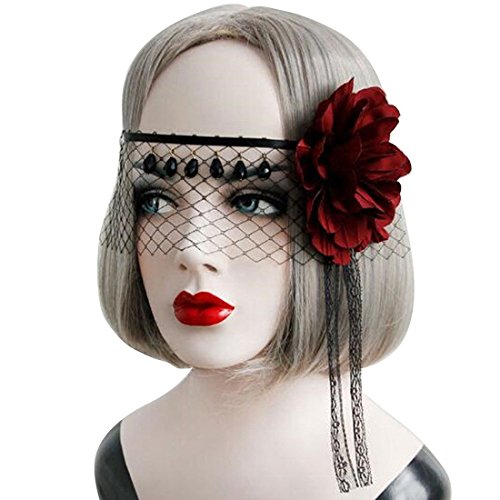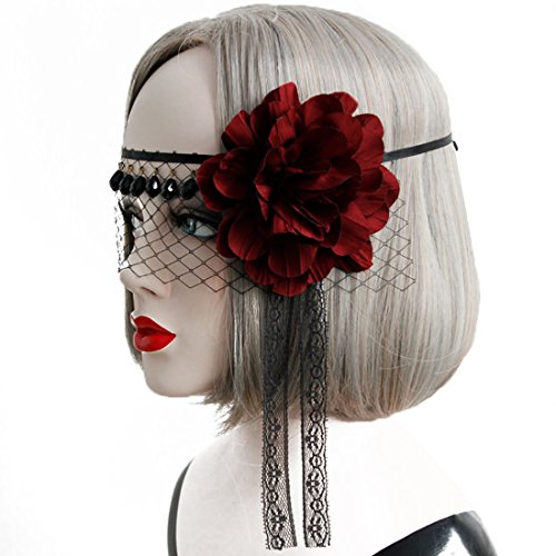 Half Face Lace Veil Flower Mask Headdress for Halloween Masquerade Costume Theater Prop Party