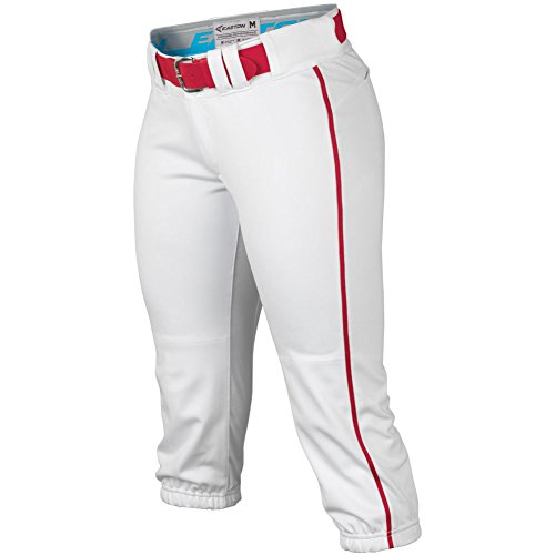 Studio : Easton Publisher : Easton Binding : Misc. Product Description Easton Womens Prowess Piped Knicker PantUltimate In Fit And MobilityThe Easton Women's Prowess Piped Knicker Pant feature a classic style and are designed specifically for female softball players with all the features elite players need for a comfortable fit with improved mobility.A Double reinforced knees and the engineered leg cuffs mean these women's softball pants are built to last.Easton Womens Prowess Piped Knicker Pant features: * Polyester knit interlock fabric with four-way mesh inserts improve mobility * Elastic waistband has silicone grippers to keep jersey in place * Piping down outside leg seams add a classic style * Double reinforced knees with engineered cuff * Double metal snap closure with metal zipper * Features two back welt pockets and belt loops * Material: 100% polyester 0