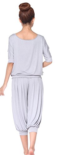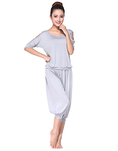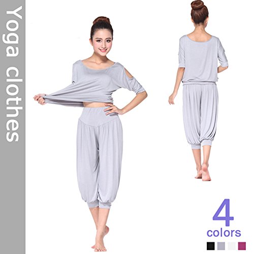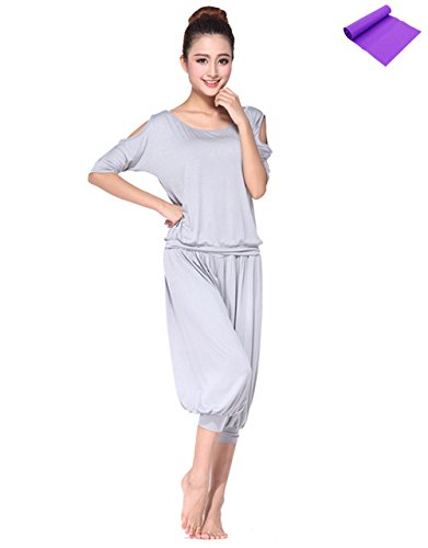 AIKOSHA NETWORK 레이디스 요가 웨어 + 요가 엑서사이즈 밴드의 세트 상품 요가복 YOGA 상하 세트 톱&7 부장바지 넉넉하게 여성에게 기쁜 요가 웨어 시리즈 - 그레이