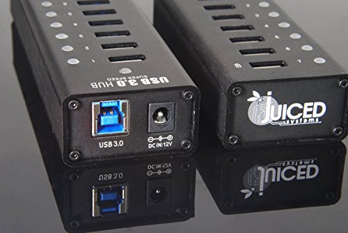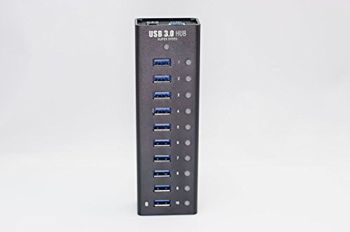 Juiced Systems Aluminum USB 3.0 10 Port USB HUB - 12v 4A AC Adapter Included