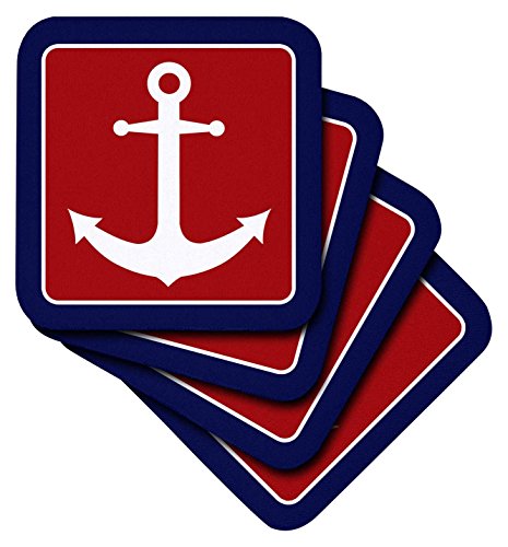 3dRose Red White and Blue Nautical Anchor Design - Soft Coasters, Set of 4 (cst_165796_1)