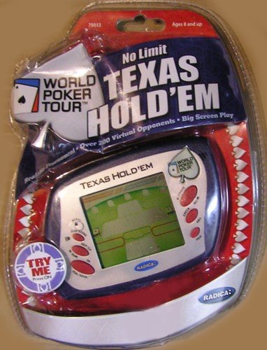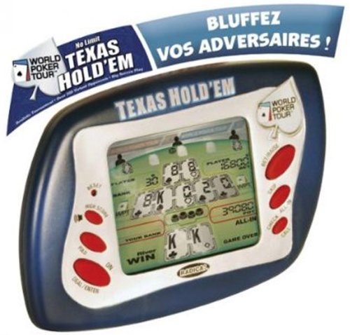 Studio : Radica Games Publisher : Radica Games Binding : Toy Product Description Put the popular poker game Texas Hold 'em right in the palm of your hand. This handheld game features a custom design and a comfortable grip. It features five virtual opponents with tournament-style play and big-screen play. Requires one CR-2032 battery, a temporary one is included. It is recommended to replace it immediately to enjoy longer game play. Measures 4.3"W x 51"D x 75"H. 0