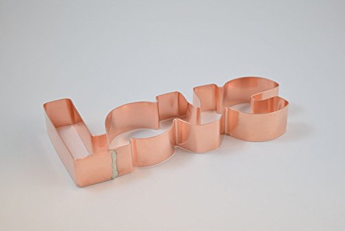 The Love Letters Copper Cookie Cutter Measures 5 1/8" X 2 1/4"