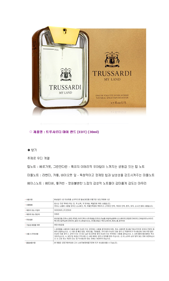 My Land Trussardi EDT (30ml) Homme men's