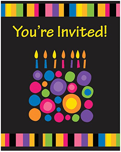 Creative Converting 8 Count Birthday Cake Dots Party Invitations, Multicolor