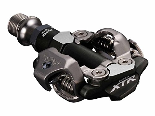 Studio : Shimano Publisher : Shimano Product Description In the world of mountain bike pedals, the arc in a graph that depicts the relationship between quality and cost would gradually and predictably rise along both axes. At the farthest side of the price axis, however, there would be a sudden and dramatic upward slope in quality, and that's where you find the Shimano XTR M9000 Race Pedals. To be clear: even Shimano's most basic pedals represent outstanding value in their durability and performance -- pairs that cost $40 eight years ago are still bouncing around on countless bikes, for example. So, you wonder, what's to gain in the not-insignificant price jump from those to these? For one, the M9000s lose even more weight than their already-lithe predecessors. Pedals' inert weight is virtually negated in their relationship to one another when spinning around a crank, but that weight still counts on the scales. You're pulling those things up the climbs, too, and the almost 100-gram difference between the XTR Race pedals and heavier, cheaper pedals out there can be huge on a long day of riding or racing. What else is worth those dollars? What makes the pros fork over their own cash for a pair when their pedal sponsor isn't Shimano? What makes riders carry move these pedals from bike, to bike, to bike, to bike, to bike? More details: the titanium hardware that comprises the spindle and cleat binders receives a proprietary fluorine treatment to boost the metal's ability to shed mud and dirt, boosting pedal life and allowing the pedal to clear grime quickly for rapid and reliable engagement regardless of riding conditions. The new M9000 version also receives a revised axle/bearing interface for even greater longevity and smoothness, while the bearings are still wide-set to maximize stiffness and responsiveness under load. The list goes on and on... so just trust us. These are very strong contenders for the best MTB race pedals out there, period. The Shimano XTR M9000 Race Pedals come with SM-SH51 (single release angle) cle... 0