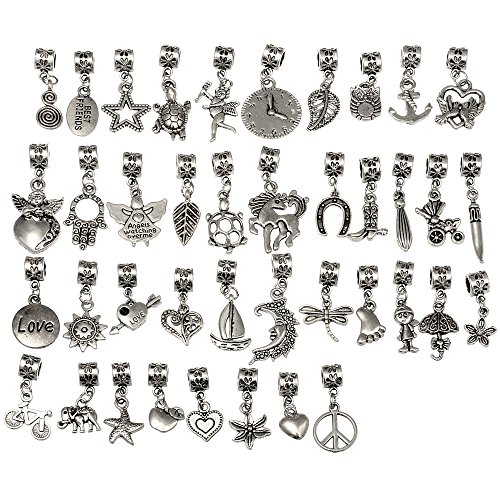 RUBYCA 40Pcs Tibetan Silver Color Connector Bails Mix Beads with Pendant fit Charm Bracelet 201