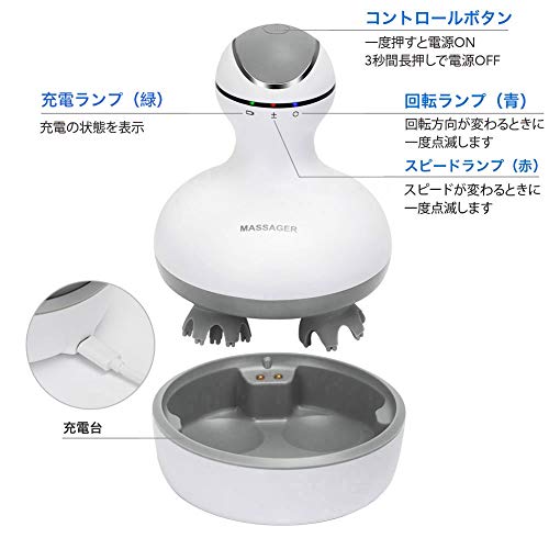 - 頭皮全体をエステ:エステの揉捏法のように、しっかりと頭皮に密着して、頭皮全体を心地よくマッサージします。