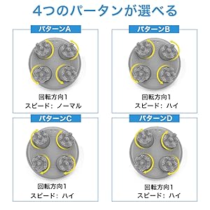 コントロールボタンを押すたびに、パータンAからパータンDまで、回転方向・スピードを切り替えることができます。