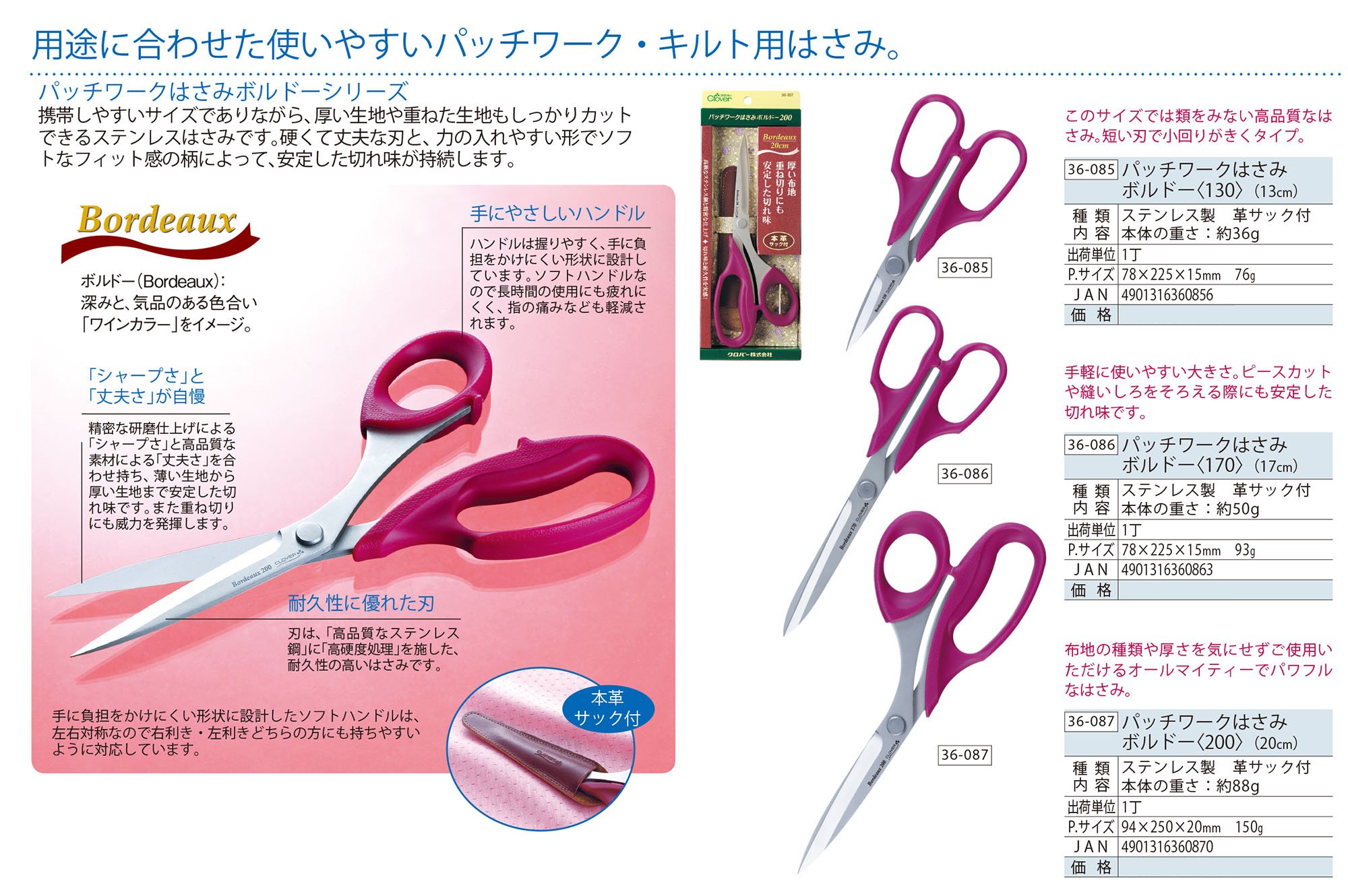 Patchwork scissors Bordeaux (130) 13cm 36-085 (japan import)