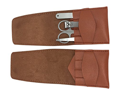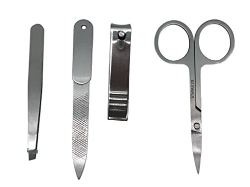 1.Package included: 4-Piece Nail Kit includes 2.1" fingernail clipper, 3.5" nail file, 3.5" eyebrow scissors and one 3.14" Tweezers. 2.nail nippers tool kit packed in PU case. The Portable?Travel?Case size is 3.9"*2.75", looks gentle and delicate. 3.This nail cutter set is suit for men, women, girls, boys, seniors, the elderly and baby. It's also a great manicure kit gift for friends and family . 0