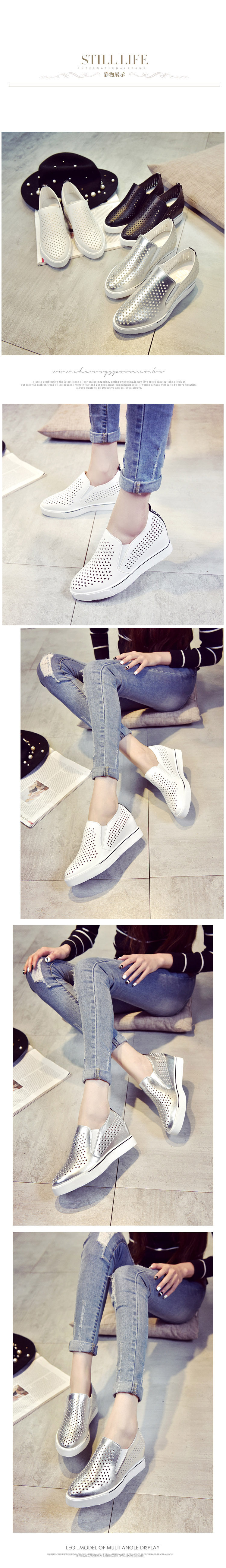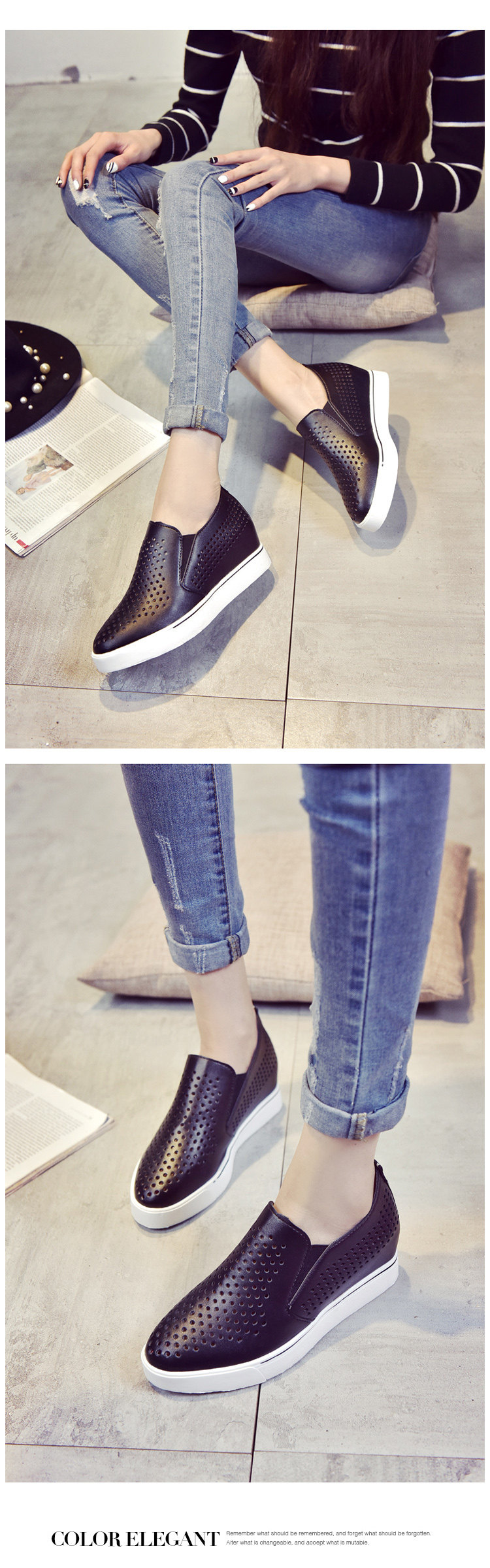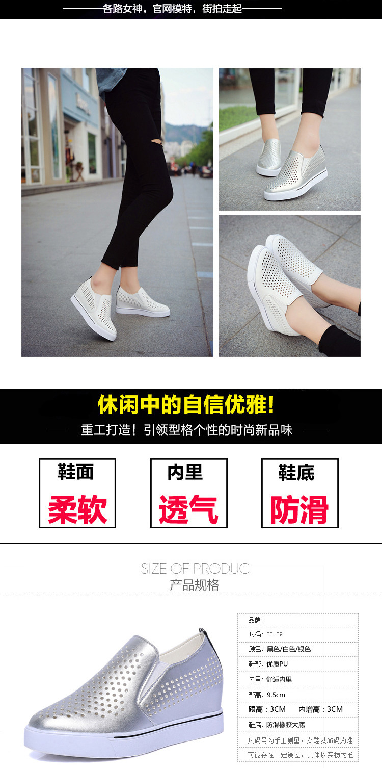 一脚蹬镂空乐福鞋女松糕厚底单鞋坡跟尖头内增高休闲透气女鞋潮夏