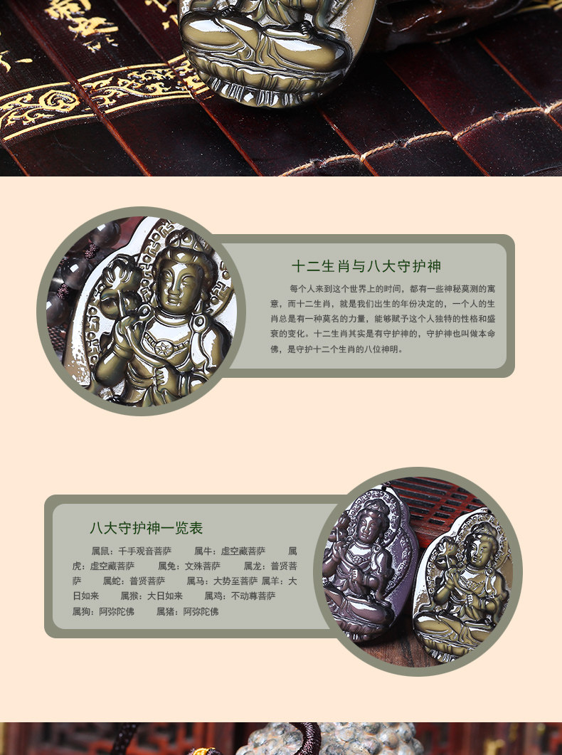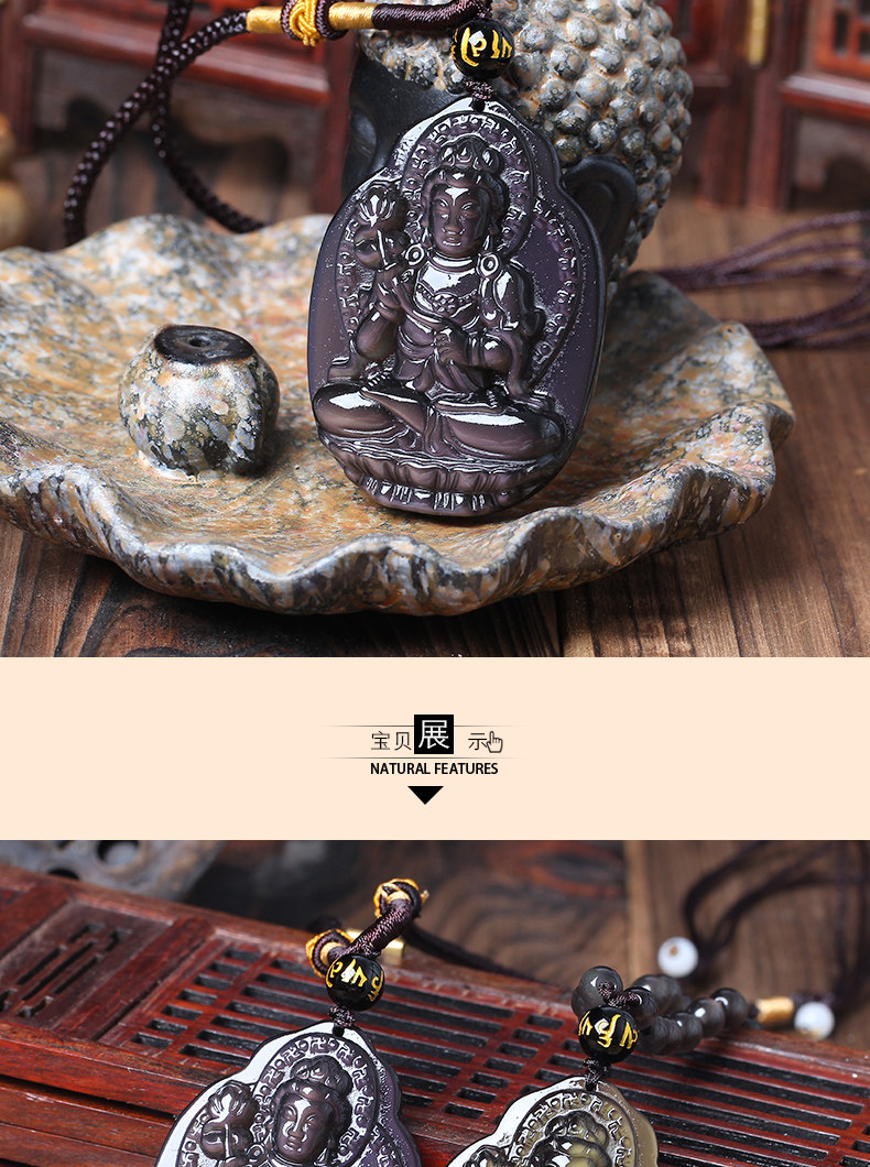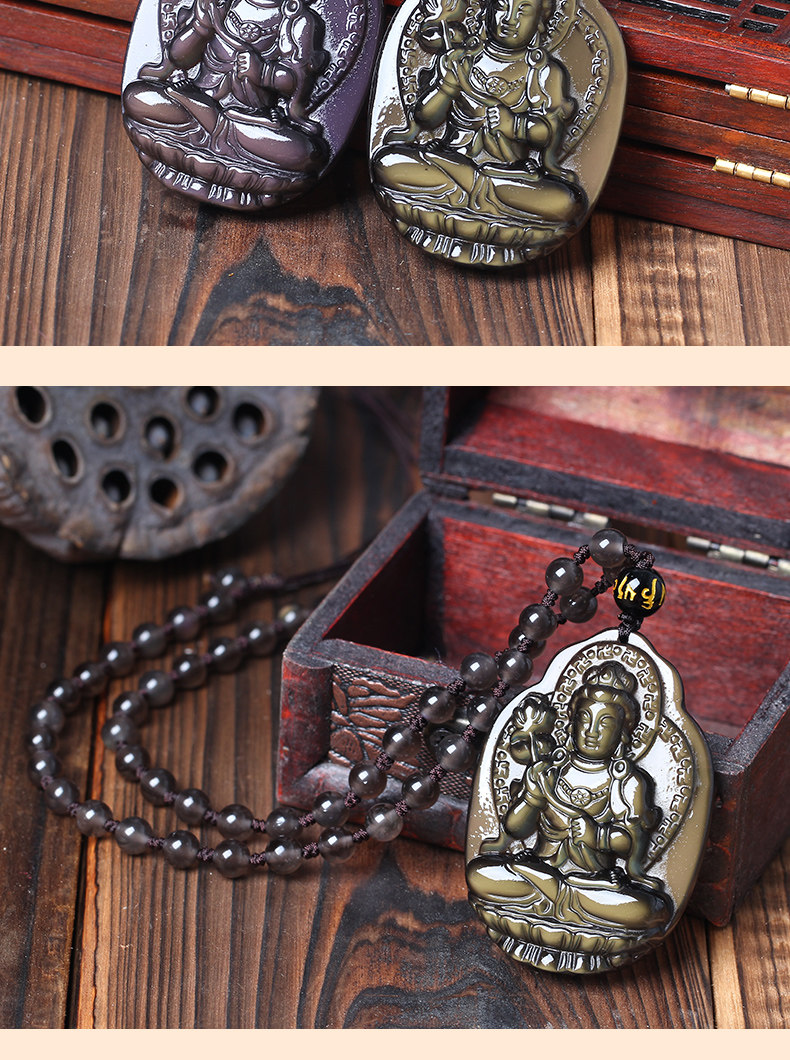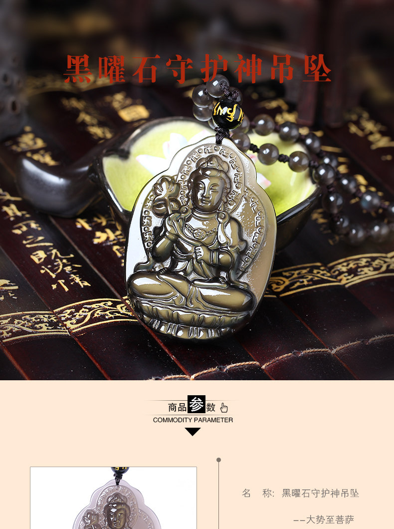 天然冰彩黑曜石吊坠男女士项链大势至菩萨吊坠属马本命佛守护神