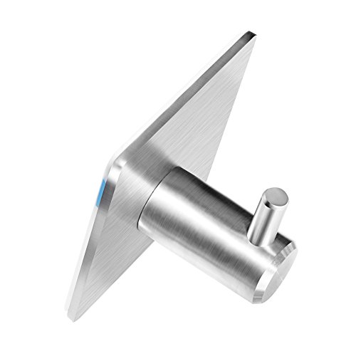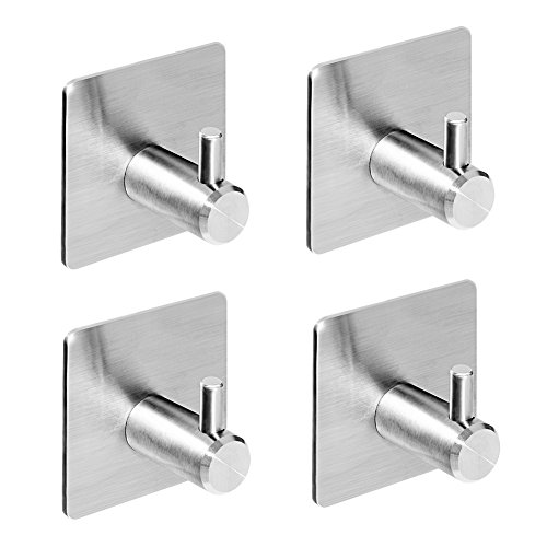 Self Adhesive Hooks, Heavy Duty Stainless Steel Key Hooks, Waterproof Stick on Wall Hooks, Powerful No Drill No Screw Damage Free Metal Hook for Coat Robe Towel, for Kitchen Toilet Bathroom(4 Pack)