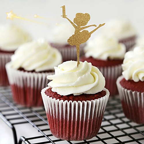Set of 24 Golden Ballerina Ballet Girl Cupcake Toppers First Birthday Party Decors - by Giuffi