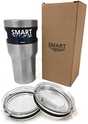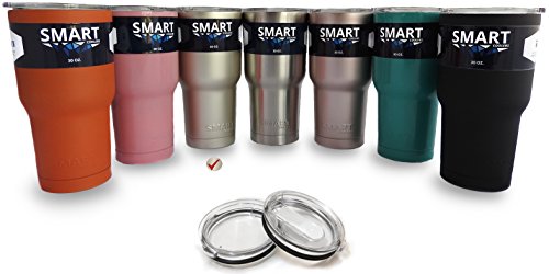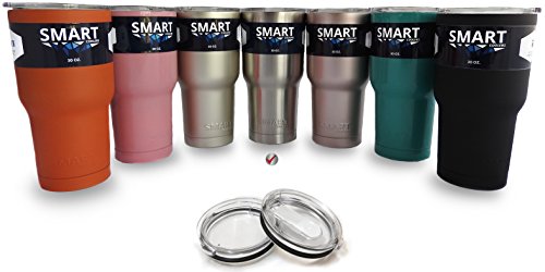 Tumbler 30 Oz - Smart Coolers - Double Wall Stainless Steel Travel Cup - Premium Insulated Mug - Compare to Yeti - Keep Coffee and Ice Tea - 2 Tritan Lids (Sliding and Clear Lid) - Lifetime Warranty