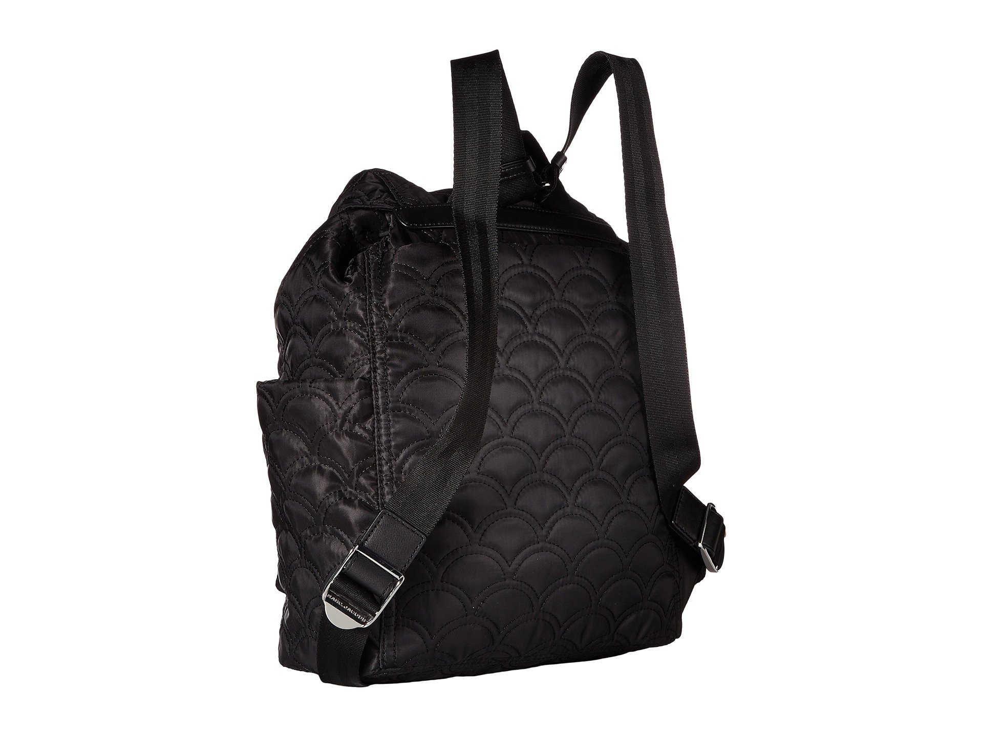 | Product Information SKU: #8822461Finish off your look with the sleek style of the Marc Jacobs™ Easy Matelasse Backpack.Backpack made of polyester.Top flap with snap button closure with drawstring.Small top carrying handle.Dual adjustable shoulder straps.Front exterior zip pocket.Two side slide pockets for added storage.Brand name embossed at front. Flat base to provide upright structure. Spacious lined interior with back wall zip pocket and two slide pockets.Imported.This item may ship with an attached security tag. Merchandise returned without the original security tag attached or a damaged tag may not qualify for a refund.This product may have a manufacturer's warranty. Please visit the manufacturer's website or contact us at warranty@support.zappos.com for full manufacturer warranty details.Measurements: Middle Width: 11 in Depth: 5 1?2 in Height: 13 in Strap Length: 38 in Strap Drop: 17 in Handle Length: 6 1?2 in Handle Drop: 2 in Weight: 14.6 oz |