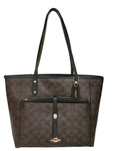 -. Feature : Gold tone hardware, Signature PVC with leather trim / Handles with 9 1/2" drop / Outside slip pocket with removable pouch / Inside zip and multifunction pockets / Measures approx 16"(L) X 10 1/2"(H) X 5 1/2"(W)