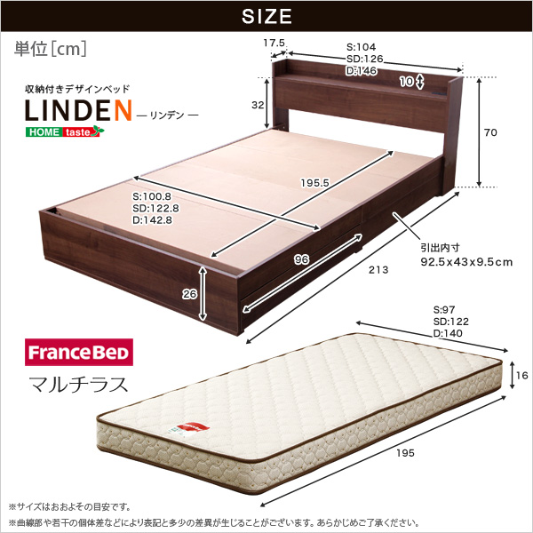 収納付きデザインベッド【リンデン-LINDEN-(ダブル)】(マルチラススーパースプリングマットレス付き)