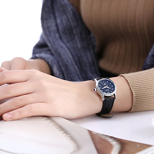 Naivo Women's Quartz Stainless Steel and Leather Watch, Color:Black (Model: NAIVO-WATCH-1076)