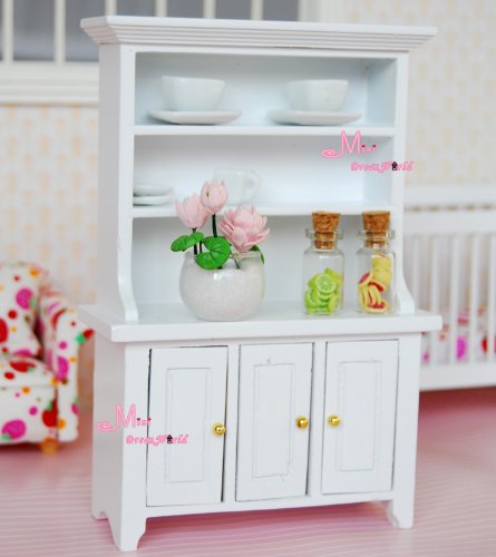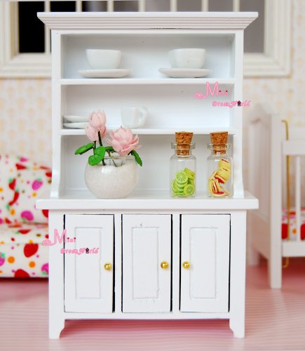 (Minidreamworld)/Dolls/Dollhouse Furniture/DIRECT FROM USA/1/12 Dollhouse Miniature Wood white SHOW Cabinet Kitchen Dinning Room Bedroom