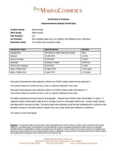 -. Feature : Anti-Aging & Nourishing Extracts from Pearls / Item is non-returnable. Not a finished cosmetic product. Consists of raw materials. / Used as ingredient for personal care products (typical concentration 1-10%) / CAS: Not available / INCI Name: Pearl powder