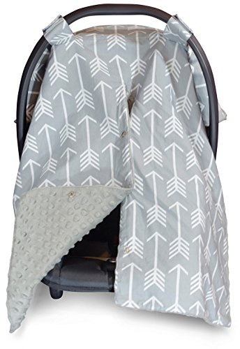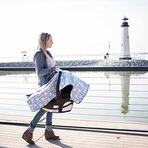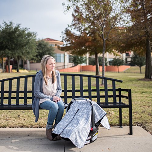 Premium Carseat Canopy Cover and Nursing Cover- Large Arrow Pattern w/ Grey Minky | Best Infant Car Seat Canopy, Boy or Girl | Cool/ Warm Weather...