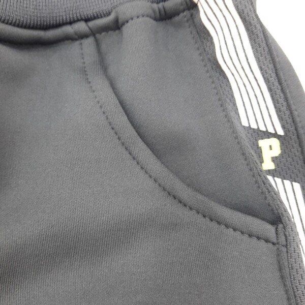 쿠션지 스판소재로 편하게 입으실수 있는 팬츠입니다. 스포티한 절개 장식과 소재를 믹스해 멋스럽게 입을수 있는 아이템입니다.p1815T512와 세트입니다