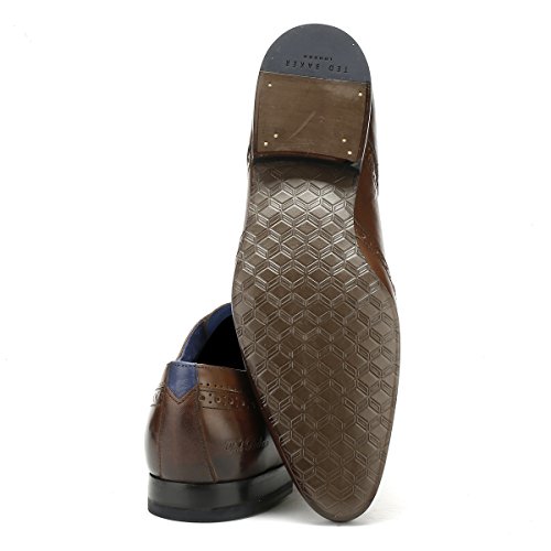 Binding : Apparel Product Description Ollivur from Ted Baker is an elongated Derby shoe boasting burnished leathers and traditional brogue detailing. Complete with signature Ted Baker branding and two coloured laces for added individuality. ? Ted Baker printed textile with suede lining ? Sole marked with repeat emboss detail ? Coloured top-piece on heel 0