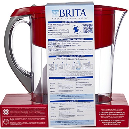 One large, 10 cup Brita Grand Water Pitcher with 1 filter, Red